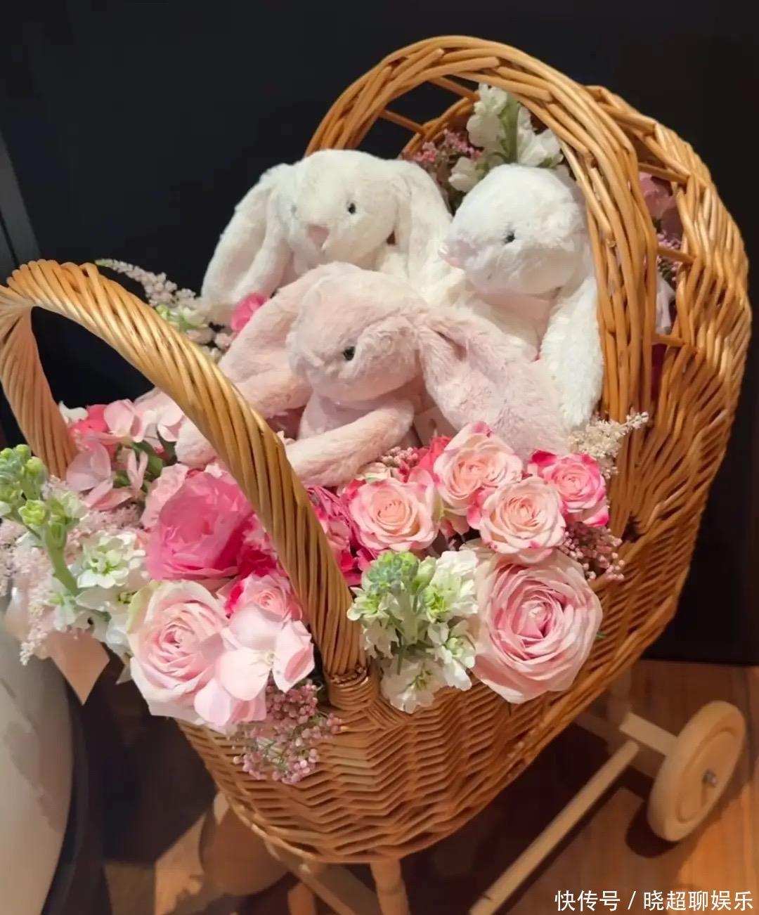 有了三胎女儿,郭富城和方媛对两个女儿的爱也没有减少。他们准备的花篮,盛满了好看的玫瑰花、还装有三只可爱的小兔子,就像是姐妹三人一般。